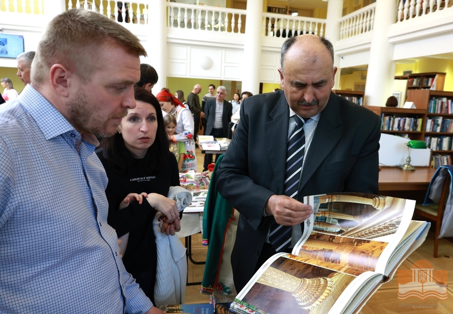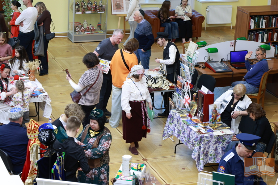 The Nations' Fair opened in the reading room. The festival was warm with the vibrant colours of representatives of various nationalities. Participants of the BiblioNight experienced the cultures of Vepsians, Tajiks, Tatars, Mari, Uzbeks, Armenians, Belarusians, Jews, Georgians, Cossacks, and Moldovans.