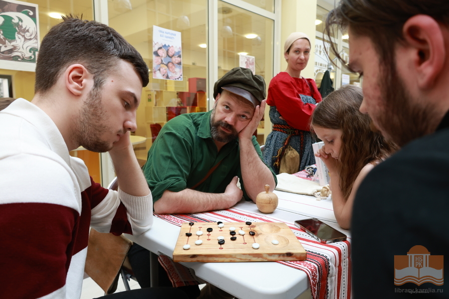 During the whole BiblioNight program, readers were welcomed by The Folk Costume photo zone – a folk photo studio for guests of all ages. For the young patrons and their parents, the library held creative and family programs: Wonderland: Reading, Playing, and Drawing; Karelian Game Library, which introduced the history and traditions of the republic's peoples; Reading Fairy Tales of the Peoples of Russia featured a quiz exhibition with tasks; One Country – Thousands of Fairy-Tales featured a game program with riddles and a workshop; and From Karelia with Love, where participants tried their hand at birch bark paper weaving.